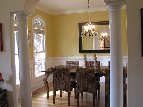 5BR/3BA, brick home with full basement. Master and guest bedrooms on main level. Stacked rock front porch. Large rear yard lined with Leyland Cypress for privacy. Great room has cathedral ceiling and gas log fireplace. Hardwood floors on main level (except bedrooms) and in upstairs hall and 5th BR (or bonus). Dining room has columns, beautiful molding and chair railing. Kitchen with granite counters, stainless appliances (all remain) and breakfast area. Master bedroom has double tray ceiling ...
