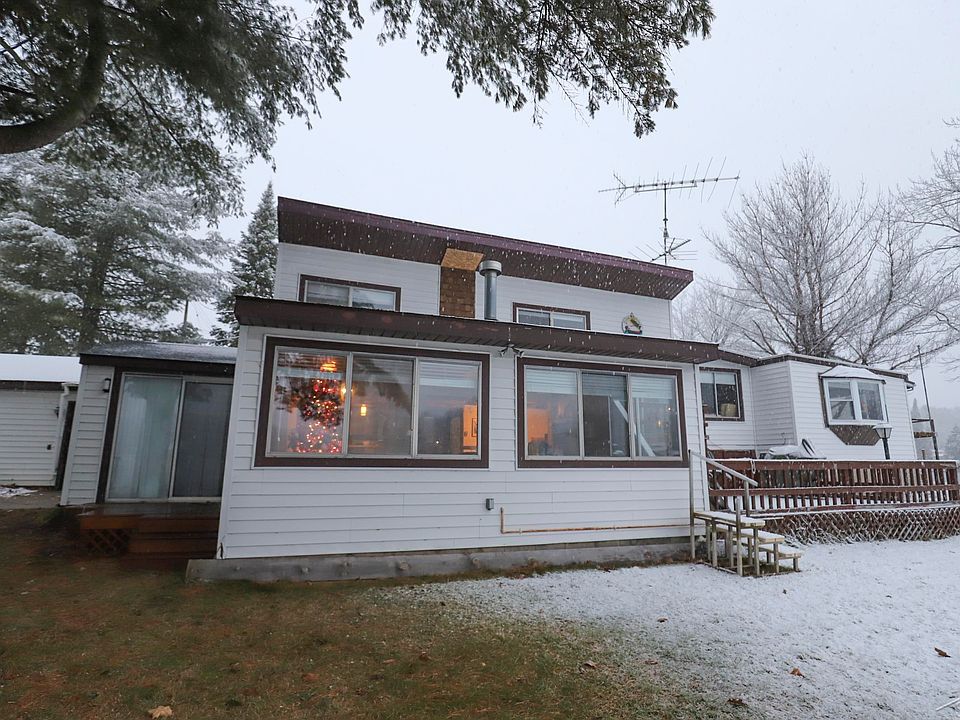 Have you ever wanted to wake up looking directly at a lake? Look no further. This tri-level home on Lake George has the most gorgeous views. Included is 120 feet of lake frontage directly out your door with no steps. If you are a winter sports enthusiast, this location would be perfect for ice fishing, snowmobiling, and skiing. Snow Snake Ski resort is 11 miles away. The home is located right in the middle of two DNR designated snowmobile trails, one to the North and one to the South. The summer is a great time to spend here. With the lake right out front ready to swim, boat, and all other sorts of water fun. This could be a perfect Air BNB all year round as well. The homeowner is willing to leave furniture in the house including all of the trundle beds (3 in total), a queen size bed, and tables with chairs. **Seller also has a pontoon for sale separately.** Call today for your own personal showing of this northern getaway!