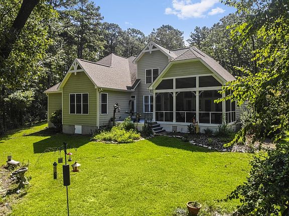 This home is on the water and has great views of Rays Mill Pond. This wonderful home won the MCHBA Home Of The Year award and was built by Daniel Adams Construction Company.The exterior of this house is downright welcoming - from the warm stone and shake exterior to the wide front porch. Inside is just as good, as the eye takes in the living room with vaulted ceilings and exposed wooden beams as well as a rustic stone fireplace and wide-plank wood floors. Off the living room is a double set of French doors that overlook a spacious screened porch, offering a view of woods and wetlands. Judges cheered the trim work on the screened porch, beautiful floors and roomy master suite.