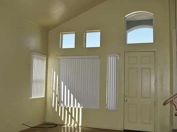 Enjoy mountain vistas and sunrise/sunsets! Property has no neighboring homes and it's built on flat land! Designed with a greatroom and an open kitchen with a family room and half bathroom downstairs. While the upstairs has three bedrooms and two full baths. Home has freshly painted walls, ceramic tile flooring in lower floor, and neutral tone carpeting that has been recently cleaned in the upper floor. A chain linked fence has been place enclosing only a portion of the property.