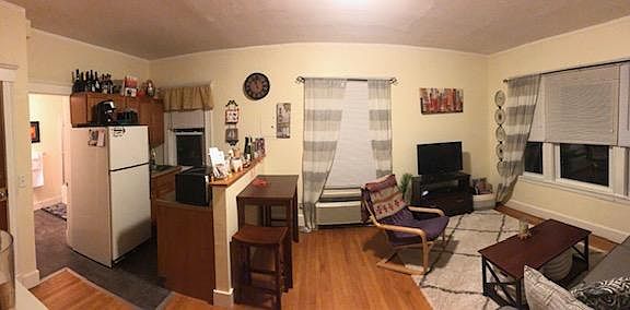 NO FEE, by Owner. Fantastic 1 bedroom. Rarely opens. Most tenants stay for multiple years. Actually quiet. Facing the back. On Commonwealth. T stops in front. Close to Boston College and 2 blocks from Cleveland Circle. Parking on premises available for extra. Electric heat/air conditioner (very efficient). Very private. Electric heat/ac, so extremely efficient. Call NO FEE, by Owner, Parking on Premises, huge living room, privacy, on Comm Ave