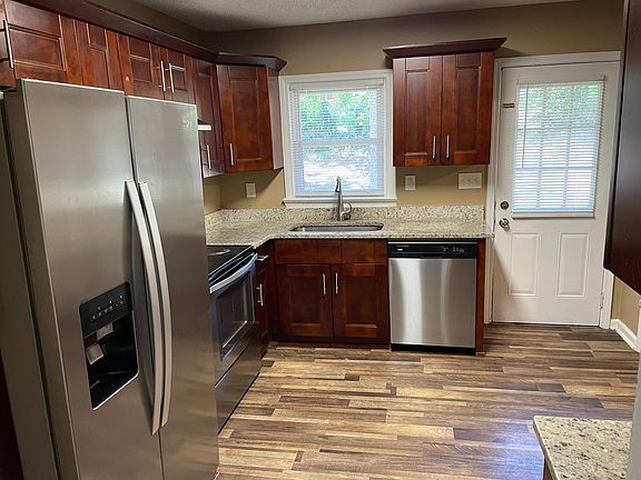 Spacious four bedroom, two bath home. Newly renovated Kitchen and bathrooms. Hardwood floors with waterproof Vinyl flooring in kitchen and dining room. All electric home with four sided brick exterior. Full home forced air heat pump. Large, fenced in yard. Carport and Washer/Dryer hook ups Owner pays for garbage. Tenant is responsible for all other utilities and yard maintenance.