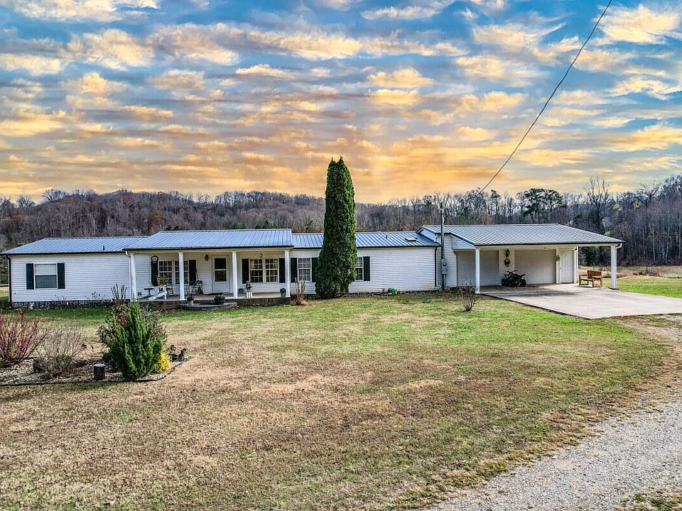 Welcome to your secluded haven tucked away at the end of a quiet road. This 4 bedroom, 2 bathroom home is sprawled on 25 acres of serene landscape that includes a pond, chicken coop and an out building. As you enter the homes formal living room, notice the vaulted ceilings. To the left is 3 bedrooms, a bathroom and an oversized laundry room. Walk through the formal living room and dining room and enter the kitchen with plenty of cabinet space, an island and a built-in china cabinet. All appliances including washer and dryer convey. Through the kitchen is a den with a wood burning fireplace for those cool Tennessee evenings. Enter the primary suite through double doors and be greeted by an oasis of relaxation. This space also has an attached room that could be used as an office, work out room or nursery. The spacious en-suite bathroom features double sinks and an incredible walk-in jetted tub, perfect for unwinding after a long day. Be amazed by the size of the 2 car attached garage which also has a large storage room attached to it. Spend evenings relaxing on the back patio that stretches along the back of the home. Schedule your showing today.