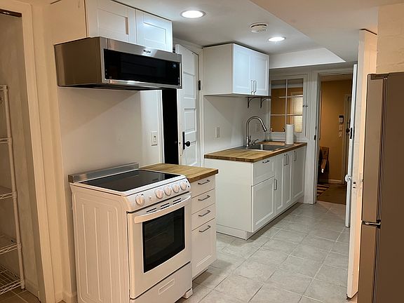 Our unfurnished walkout basement apartment is available now. Our basement apartment backs up to Rock Creek Park is available. It is a charming one bedroom in a row house in Mt. Pleasant. The kitchen and bedroom were updated within the last two years. Full kitchen and full sized refrigerator. There is shared laundry and bike storage. Renter pays water, electric, and splits internet if desired. We are looking for a professional, med student, or grad student to rent our basement. We want a non-smoking, non pet owner, neat person. Our ideal renter would work from an office at least a few days a week so we can have access to the shared laundry. We are a couple, both around 40 with an almost two year old baby. We love hosting conversational dinner parties and playing board games. I am an IT professional who works remotely and my wife is a human rights lawyer. Please reach out and tell us a little about yourself as well as when you would like to come by to see the apartment. Lease does not include utilities. You split internet, electric, and water with the house.