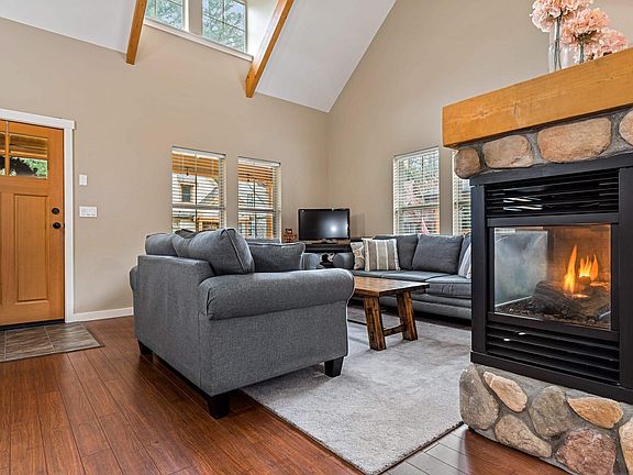 Welcome to the tranquil community The Cottages in Cultus Lake. This charming 2 bdrm, 2 bdrm cottage boasts 1,378sqft of open floor plan. The main living area features stunning vaulted ceilings, tons of natural light, a cosy river rock fireplace and more. New appliances throughout the kitchen, extensive cabinet storage, and modern white backsplash. Master bedroom on main. Upstairs is the spacious loft over looking the living room and the second bdrm/bathroom. Step out the double french doors and enjoy the fully cover deck. This 60 acre gated community has so many amenities to enjoy; a 10,000 sq. ft. clubhouse, 2 pools, 2 hot tubs, a gym, multipurpose sports courts, various walking trails, parks, playgrounds and more. If you are looking for your new home this is the one!