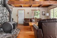 Wood-burning stoveOpen-concept layoutLarge windowsRemodeled bathPrivate deck accessHuge wraparound deckStylish krous kitchen sink