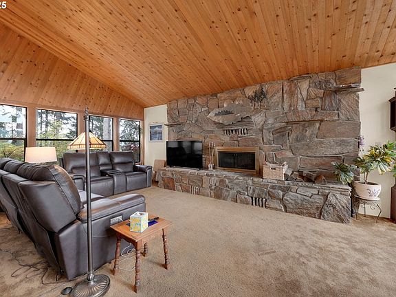 Welcome to this warm and inviting 3-bedroom, 2.5-bath, 2,016 sq. ft. home on a generous 1/2 acre lot in the desirable Cooper Creek neighborhood, just minutes east of downtown Sutherlin. Enjoy a tranquil setting with fishing, boating, and swimming at Cooper Creek Reservoir only a stone’s throw away. The bright living room features soaring ceilings, two walls of windows, and a cozy fireplace that fills the space with natural light. A spacious family room with ceiling fan, a pellet stove, and doors leading to the back deck, creates a perfect flow for entertaining. The open dining area connects to the kitchen with stainless steel refrigerator, built-in dishwasher, and an eating bar for casual meals. Upstairs, you will find all three bedrooms and two full baths, offering great separation of space. The primary suite includes a private balcony with peaceful, tree-lined views of the lake, an ideal spot to enjoy your morning coffee or unwind at the end of the day. Outside, the gently sloping, treed lot provides a serene backdrop with a level greenspace with built-in firepit for outdoor gatherings, an expansive back deck for barbecues and entertaining, and a handy storage shed for additional organization and storage. An attached, oversized garage rounds out this fantastic property. Experience comfort, natural light, and a peaceful lifestyle in this inviting home—truly a wonderful place to live, relax, and enjoy the beauty of Sutherlin.