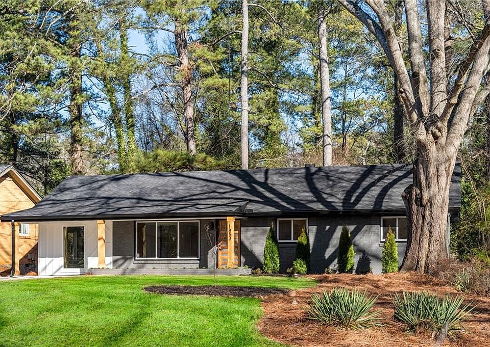 Welcome to your new dream home, where midcentury modern architecture meets bold contemporary design in this fully renovated masterpiece. Elegant Italian cypress trees underplanted with azaleas elevate the home's curb appeal, while a bed of ice pansies welcome you at the front porch. In the spring, the front yard will bloom with a spectacular display of blazing red azaleas and white flowering dogwood. Step through the front door and immerse yourself in the airy open concept living space. The midcentury architecture is enhanced by hardwood floors and large windows filling the home with abundant natural light, creating a warm and bright ambiance. The heart of this home is the modern chef's kitchen, equipped with a new gas range and sleek quartz countertop, complemented by new white Shaker cabinets, open shelving, white herringbone subway tile backsplash, slat wood wall panels, and matte black fixtures. Adjacent to the kitchen, an outdoor deck awaits in the backyard, perfect for al fresco dining, entertaining, or relaxing. Discover midcentury modern charm in the guest bedrooms, illuminated by Sputnik chandeliers. Indulge in your self care routine in the bathrooms, which offer a spa-like luxury experience created by the floor-to-ceiling tile shower walls, matte black fixtures, and contrasting tile floors. Do laundry in the spacious laundry room, which boasts new Shaker cabinets, open shelving, and vinyl composition tile flooring. Store tools, equipment, and gardening supplies in the shed in the backyard. Located in a quiet residential neighborhood in Decatur, this home offers a peaceful retreat. Experience the magic of this exceptional midcentury modern gem. Schedule your showing today.