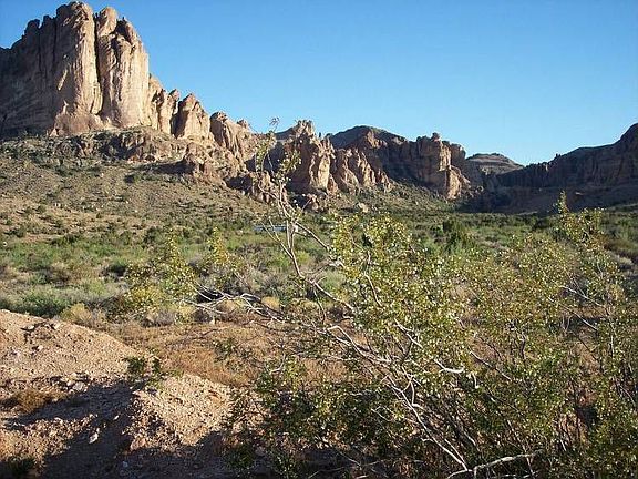 A view lot in desirable Unit 16. Not in the floodzone. Beautiful views toward the Black Mountains and over Golden Valley. Rock paintings in the arsz.