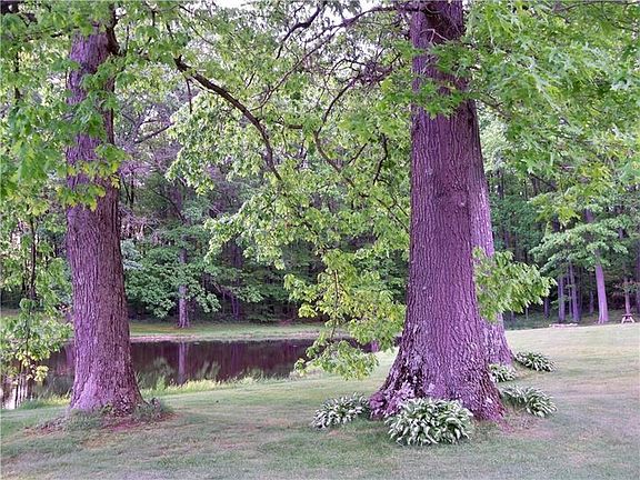 Spacious, Country living on 2.2 acres with a beautiful pond and surrounding trees. This ranch offers a Master Bedroom with 2 closets, the other 2 bedrooms have views of the wooded back yard. Distinct fireplace between the living and dining area. Enclosed back porch to relax and enjoy the quiet setting. Newer electric heat pump, water pump, and water heater. New roof on detached garage and work space 33x34, that also has utilities. Country living, but close to town amenities.