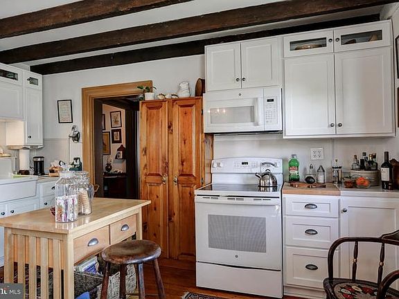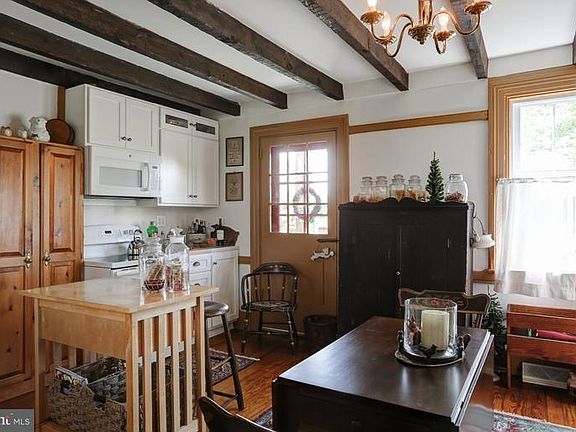 Come fall in love with this farmhouse, circa 1830 with a 4 over 4 1850's addition. Situated on a beautiful .89 acre lot surrounded with lovely plantings, and a detached garage which has a variance for a home occupation (small antique shop). This special home has all the features you would expect in a vintage home - beamed ceilings, deep window sills, wide plank wood floors, a fireplace in the eat-in kitchen with a farm sink, a claw foot tub in the spacious bathroom and a walk-up attic, just like grandma used to have! This home also has some features you would not expect in a home of this vintage including a full bath on the first floor, central air and public water & sewer! Impeccably maintained top to bottom, inside and out with attention to quality and detail by a very conscientious owner for 34 years who has had the home pre-inspected and is offering a home warranty too!