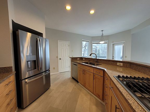 18530 King Eider Lane is a Potter Creek home located above Potter Marsh in South Anchorage. It has spectacular views of the inlet and the mountains. This home has 5 BR, den/office, 3 fireplaces, 3.5 baths and a 2 car garage. There is over 4000 square feet of living space and it is $4250/month plus utilities and will be available late March. No pets, no smoking, one year lease required.