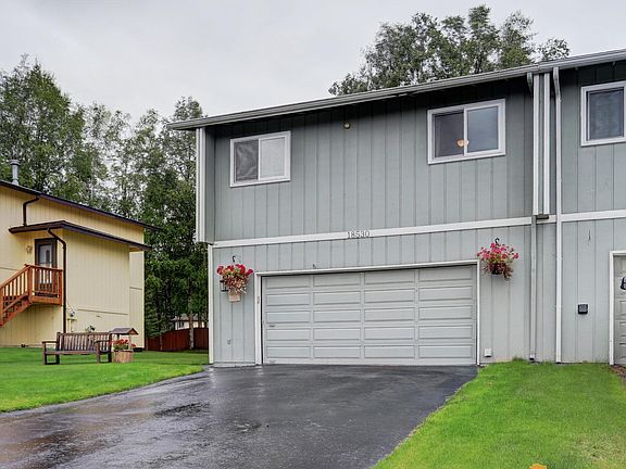 Big 4 bedroom home with 3 baths on cul-de-sac. Backs to over seven miles of lighted hiking and biking trails. Soaring vaulted ceilings, sunny skylights, master bedroom suite with full private bathroom and double closets, tall crawlspace with loads of storage. Landscaped yard, fenced back yard. Excellent commute location quick to Anchorage and JBER.