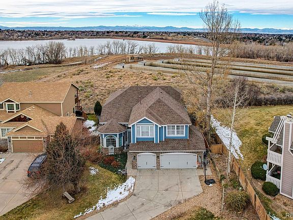 The very rarest of locations for the State of Colorado: (Picturesque setting with breathtaking Waterfront/Lake & Mountain Views) - 100% incredible. Your neighbors include deer, fox, bald eagles nesting right behind the property, hawks, ducks, geese, birds of every shape and color, rainbow trout...you get the point. OUTSTANDING - There are over a dozen windows having Lake and/or mountain views. Super quiet & safe Cul-de-Sac location, plus you have tons of parking on the extended driveway! The fantastic floor plan is amazing and feels grand throughout. Over 740 SQFT of multi-level decking (Enclosed Hot Tub is included). Huge Pro-landscaped lot, with over 12,850 SQFT. Truly has all the features you look for: 4bd, 4ba, 2 Story, lake front location, Finished Basement - (9+ foot Ceilings), Rec Room, Huge 4th Bedroom with walk-in Closet, 3/4 Bath, and great storage area. Over-sized 3 Car Garage with service door to backyard, Giant Loft with additional large walk-in storage closet, Main Floor Study with bay window, Main Floor Laundry, Great Storage throughout, Cherry Creek Schools. Outstanding Lakefront Location, Outstanding Neighborhood Location, Outstanding Floorplan, & the VIEWS will KNOCK YOUR SOCKS OFF! Absolutely designed to delight & Built to Endure...Dazzling Eat-in kitchen. Large comfortable Family Room. Gracious Living & Dining Rooms. Vaulted throughout. Also, the property is ready for immediate possession, no rent-back needed. Gift of a Lifetime, don't miss this opportunity to own this exceptionally rare property....See it today!