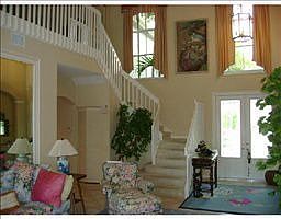 This lushly landscaped five bedroom three and one half bath plus loft home sits on a beautiful lakefront home site.  A long motor court leads to the three car garage.  Enter the stately home through heavy glass doors.  Oversized tile has been installed on the diagonal.  The dramatic living room has a two-story volume ceiling, custom wood framed mirror wall treatment, French doors and clerestory windows.  The gourmet kitchen has wood-like cabinetry with under cabinet lighting, granite counters with undermount sink and decorative tumblestone backsplash.  Top-of-the line appliances include Jenn-aire cooktop, double oven and microwave.  Enjoy a quick snack at the breakfast bar or a leisurely meal in the cafe area with bay window overlooking the pool and lake.  The formal dining room is perfect for family gatherings.  The large family room is open to the kitchen.  The fifth bedroom/den is used as a library and has Mannington wood-like floors, French doors and wood built-ins.  There is a formal powder room and full bath which also serves as a cabana bath on this level.  Ascend the regal staircase to the second floor with four bedrooms and loft.  The luxurious master suite has a tray ceiling, crown molding, outfitted walk-in closets, sitting area and large master bath.  The home has been wired for surround sound.  Enjoy the tropical backyard paradise with covered and screened patio and open heated pool and spa overlooking the lake.