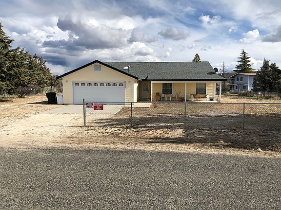 Charming 1,712 sqft 3/2 single level home within the rural community of Peeples Valley, AZ. At an elevation just under 4,500 feet you can enjoy all seasons and mountain views while relaxing on your front or back patio. Inside you will find vaulted ceiling throughout with skylights providing natural lighting in all the main living areas. Master bedroom features a full bathroom with walk-in closet and separate backyard entrance. The kitchen design optimizes your space with an abundance of storage cabinetry and work area. Other features include a gas fireplace, laundry room sink, central vac and extended length garage. Outside you will find a fully fenced yard with two drive thru gates and RV hookups. Conveniently located just 30 from miles Prescott and Wickenburg.
