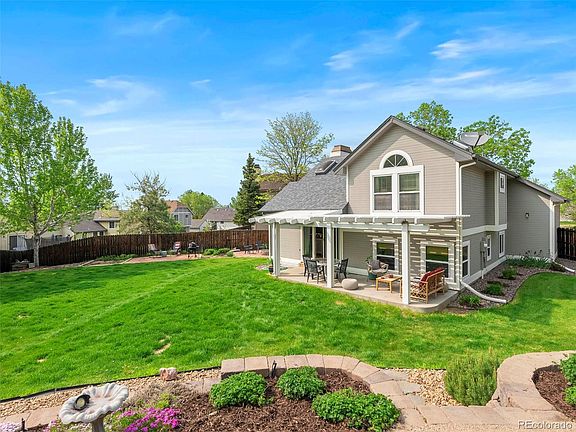 Tucked at the end of a cul-de-sac lies this gem of a home. Meticulously maintained on a large lot with amazing mature landscaping, this home features a tri-level floor plan, vaulted ceilings, and oak flooring on the main level. Bright and airy, greeting you as you enter is the formal living room with a gas fireplace, a view to the backyard, and an open-air connection to the kitchen, giving that open-concept feeling. The kitchen, with stainless steel appliances and the perfect sink placement, gives you views of both living spaces and the backyard. The sunken family room is off the kitchen, perfect for a movie night with views of the lush backyard oasis. The upper level features primary and secondary bedrooms with vaulted ceilings and large closet spaces. The primary has ensuite access to the bathroom with a large soaker tub and skylight for bright natural light. The lower level with the family room has an additional bedroom/bathroom combination. The large 4th bedroom/office flex space is just a few steps away. There's an unfinished storage room with a workbench and washer & dryer connected. This home sits on over a 12,000sf lot with a backyard to rival the neighborhood. As you leave the kitchen, you enter a pergola-covered lounge space, with the yard continuing boasting features like a fire pit, a grilling area, a terraced garden with a sitting area, and lots of privacy. Lucky enough to be located in the coveted Prides Crossing neighborhood with the award-winning Cherry Creek school district, you will have the best of both worlds in this home. The Aqua Vista public pool is close enough to walk, with restaurants, grocery stores, and shopping just minutes away.