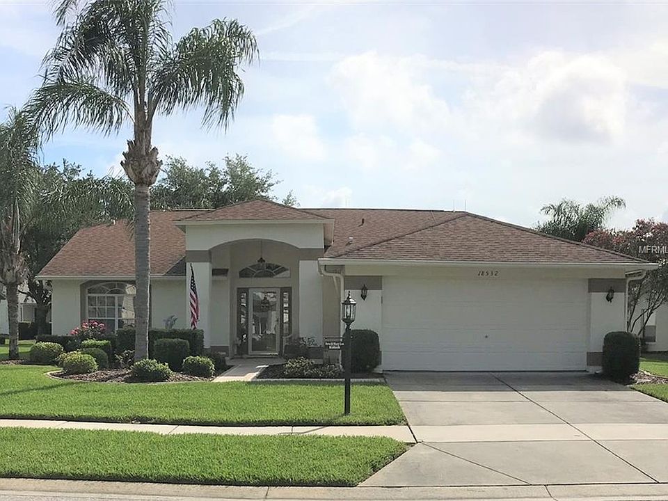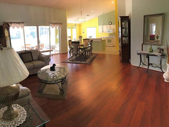 Most Popular Floor Plan - Open and Bright! Great Room/Living-Dining Room w/Vaulted Ceilings with Sliders to Extended Lanai; Kitchen w/Corian Counters/Abundant Counters and Cabinets; Master Suite w/2 Walk-in Closets and Sliders to Lanai 3rd Bedroom/Den/Office; 2nd Bedroom Suite w/Full Bath; Laundry with Extra Cabinets and Storage Closet; Attached 2 Car Garage w/Outside Entry Pad and Located in "Maintained" Village - No Outside Work!