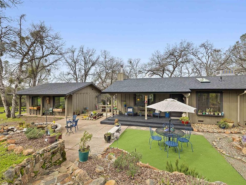 The Sweet Country Life. Sitting on 5 gentle, rolling, and usable acres, this property is the perfect place to live out your country dream. Gated, fenced and cross-fenced, it is ready for you to create a space for all that you love. Do you want horses, chickens and perhaps goats and sheep? There's room. How about an extensive veggie garden? This property has you covered. Multiple areas to sit and hang out and a disc golf course? Yes, and Yes. And then there is the natural beauty of the land to enjoy with sweet rock outcroppings and wildflowers. The main home is warm a cozy with a great room featuring wood floors, pine ceilings with a heat stove in the living room space and richly colored tiled flooring in the dining room and kitchen area. The kitchen has a fresh feel with stainless steel appliances, blue colored cabinets, and white/grey countertops and backsplash – as well as a nice sized pantry. The master bedroom has a barn door leading into the remodeled bathroom featuring a nice sized shower. In addition, there is one more bedroom as well as a bathroom off the hallway and a laundry room which offers plenty of storage. The deck off the back of the home is the perfect place to enjoy your coffee and take a soak in the hot tub. Steps away from the main home is a 1-bedroom in-l