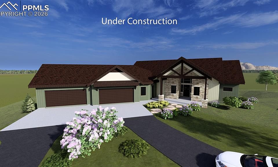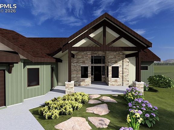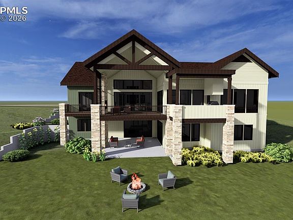 The Dakota is a Mountain modern custom home being built by a Parade of Homes award winning builder and features amazing style and design. The home is situated on a beautiful 5-acre lot to maximize unobstructed views of Pikes Peak and southern exposure. The moment you enter you will be awestruck by the expansive great room and wall of windows opening onto the covered deck with fireplace and glass wind wall. The gourmet kitchen features JennAir appliances, stone countertops and matching walk-in back kitchen for meal prep and storage. The back kitchen features a second sink, fridge and dishwasher along with a coffee station and water bottle filler. The primary suite offers dramatic prairie, forest, and mountain views and abundant natural light. The primary bath features a zero entry wet room with tub and multiple shower heads. The primary closet has abundant hanging space, large island, and conveniently adjoins the large laundry/mud room off the garage. The main level also features a 2nd ensuite bedroom w/zero entry shower, double vanity, and walk-in closet. Adjacent to the entry is a beautiful office with glass French doors. You’ll love the large functional mud/laundry room with cabinets, counters, sink, and a 10' bench with cubbies. A spacious walk-out lower level has 3 ensuite bedrooms with walk-in closets, a large recreation room with fireplace, wet bar, game and pool table area and opens onto a large, covered patio. French doors open into a large exercise room with additional outdoor access. Additional features include: energy efficiency upgrades, mechanical room with plenty of unfinished storage, a hidden, unfinished, conditioned storage room for things you’d like to keep out of sight, a framed and pre-wired future elevator shaft currently finished as main and lower level common closets, a 4-car garage with abundant storage and workspace in addition to parking areas for all your toys. Make this dream home yours today!