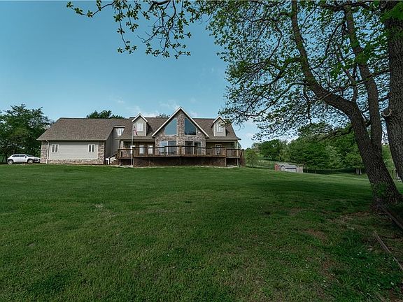 This fantastic home sits on 4 acres minutes from east Fayetteville or Springdale. Features include wood floors in living room, dining room, entry and kitchen, soaring 2 story windows in the living room with a beautiful fireplace, and a second living area upstairs. Kitchen has quartz countertops, lots of cabinets and counterspace, a pantry and a large island. Large master suite includes roomy closet, a whirlpool tub in the bath, and access to the deck. Upstairs bedrooms include one with private bathroom. The 4th bedroom would also make a great bonus/game room. The large front deck is perfect for entertaining and enjoying the view. 30x50 shop building has 2 bay doors, is fully insulated and has an area that can be heated with the wood stove. Lots of room for all your hobbies and toys. The above ground pool shown in photos has been removed.
