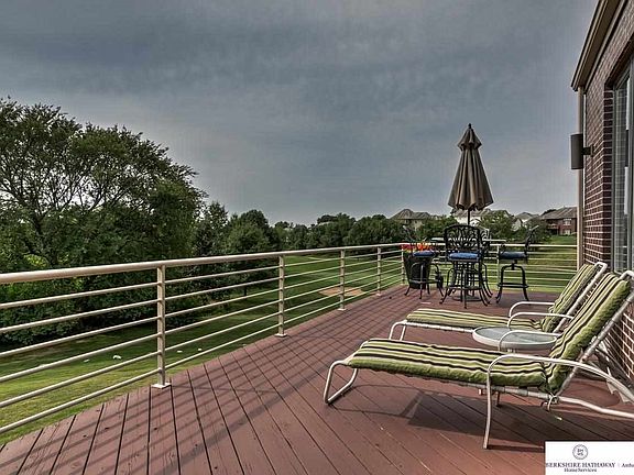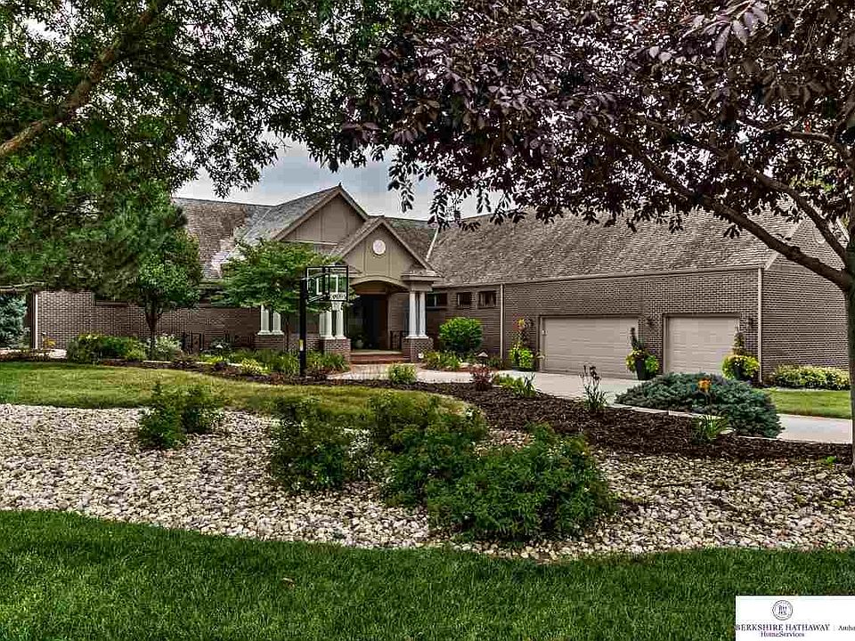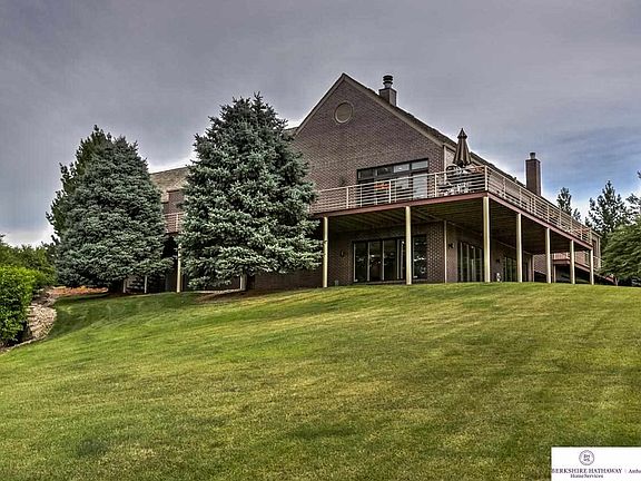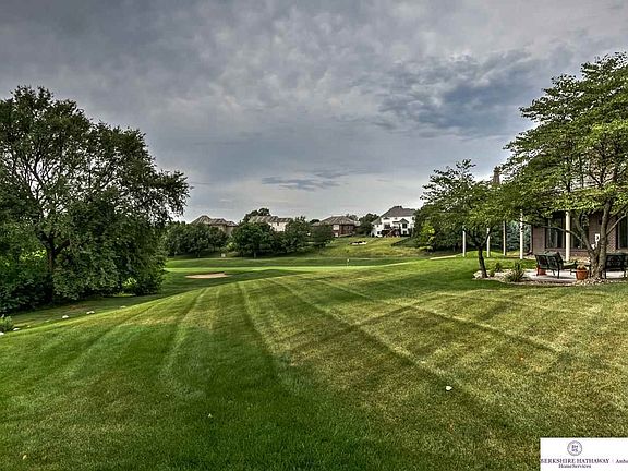 Location Location! Classic contemporary all brick ranch home overlooking beautiful Shadow Ridge Golf Course on nearly 3/4 of an acre w/ green space adjacent to the home. Wide open floor plan w/ wrap around deck capturing all views of the golf course. Sleek custom cabinets, thermador appliances, large walk-in pantry, wine bar, hearth room. Basement wet bar, media area, golf practice room, work out room overlooks new patio which perfect for entertaining! Elkhorn South schools.