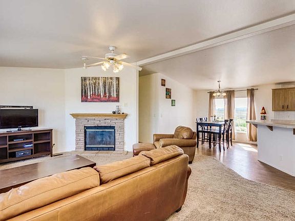 Drive up to 4.5 acres of horse property on a fully graveled driveway with stunning mountain views! This home welcomes you to a bright and open great room with vaulted ceilings and a cozy fireplace. An open sight line to the kitchen creating the perfect entertaining space. The fully functional kitchen offers rich cabinetry, double sinks, black appliances, and an island/breakfast bar. The bedrooms are spacious and there is an inside laundry room. The master ensuite has a double sink vanity, and a walk in shower with separate garden tub. Enjoy the beauty of nature in your backyard with natural vegetation, a horse stable, and animal pens. Above the flood plain so no flood insurance is required.13 properties on the well share agreement-$50/mo. PROPERTY CONVEYS AS IS-priced accordingly.