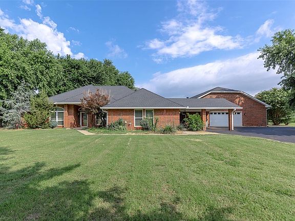 QUIET, SAFE LOCATION ON NEARLY 2 ACRES—PEACEFUL SETTING OFFERS PEACE OF MIND FROM OKLAHOMA STORMS--ROOM FOR ALL YOUR TOYS & HOBBIES This home has it all ! Natural gas whole house generator that assures you’ll have power when Oklahoma storms, wind, ice and blackouts occur, PLUS an underground storm shelter. High efficiency heat & air systems, added attic insulation, tankless water heater and insulated window glass. All of this plus a fantastic floor plan that offers a private suite for mom, dad or guests. Walk-in showers allow easy accessibility at any age. This is a true split bedroom plan and an in-law plan…all in one home. Large 2400' heated garage plus an additional 30x35' steel garage. Relax on a 2000+ sq/ft outdoor deck under the shade of the trees, along with a large, covered patio and TV area and a warm firepit for the chilly evenings. A 740 foot (appx) large game room/media room with a ½ bath is slightly detached from the main home and has its own energy efficient climate control system. This space can be a home-school classroom, dance studio or hobbyist's room. 10 minutes to the OU campus..and still private enough to call this setting...."country living in the city!"