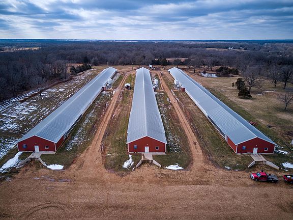 Immaculately kept Tyson breeder farm with 3 (55'x600') chicken houses built in 2017. This turn key operation sits on 38.80 rolling acres with a charming 4 bed, 3 bath farmhouse with several outbuildings. This farm includes a concrete floor compost shed (24x40) with an Ecodrum composter, a pond, generator, new pipe fencing in front of chicken houses and cross fenced cattle pastures. New roof-2020 New Central heat and air-2019