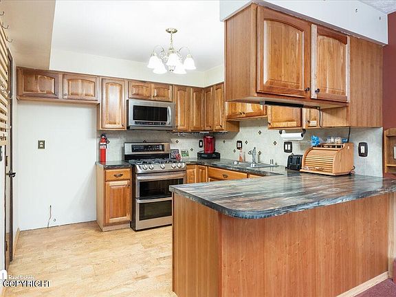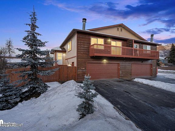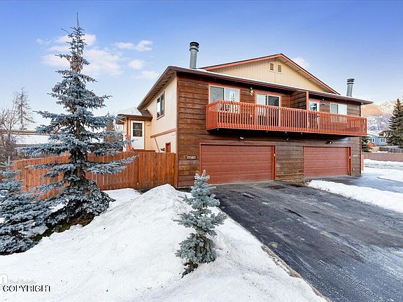 Welcome to Eaglewood Subdivision! This 3 Bdrm, 2 bath ZLL has a 2 car garage & a deck off the dining area to enjoy the mountain views. Upstairs has the Kitchen, Dining area & living rm with real fireplace! The spacious primary bdrm enjoys mountain views, lrg closet & shared bath. There are 2 bdrms, downstairs, full bath, laundry & garage.Fully fenced landscaped backyard & Storage Shed!Miles and miles of Walking - Bike trails to use within the subdivision! Walmart is just minutes away and wonderful commute to Anchorage, JBER or the Valley! And the ball parks are close by for those summertime activities for the kids! Seller is providing a home warranty for buyers! This home is ready for its new owners! Roof was replaced in July of 2018. Estate sale.