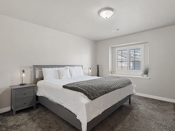 Rare row-end townhome nestled in a quiet Layton neighborhood with a beautiful mountain view. One of the largest units in the complex with a two car garage and a basement. Upgrades range from granite countertops, appliances, plantation shutters, a spacious walk-in closet in the master, and a fully finished walk-out basement. You don't want to miss this! Only 2.5 miles east of HAFB, 20 minutes from ski resorts, and next to Hwy89. Showings limited to 04/08 - 04/10. Bring your best qualified offer.