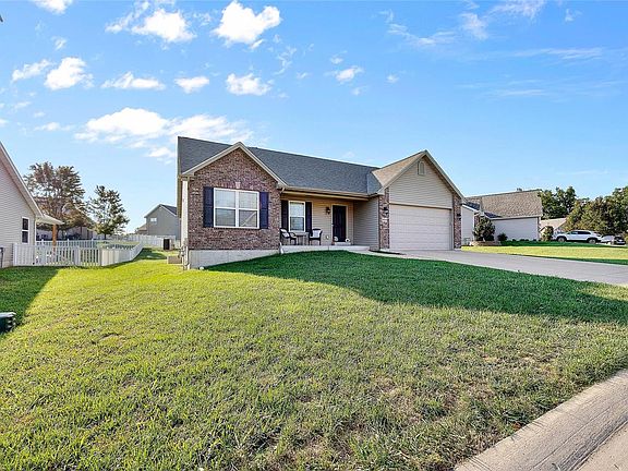 Discover this exquisite one-owner ranch in the sought-after Bailey Station Subdivision, located in the Festus R-6 School District. This 3-bedroom, 2-bathroom home has an open floor plan with vaulted ceilings and tons of natural light. The spacious kitchen, with numerous cabinets and vast countertops, is perfect for cooking enthusiasts. Conveniently located next to the bedrooms, the main floor laundry enhances the home’s functionality. The primary bedroom offers a serene retreat with an en-suite bathroom, double sink, separate tub, and shower. Two additional bedrooms and a full bathroom provide ample space for family and guests. Outside, the large backyard features partial fencing for privacy, and the oversized stamped concrete patio is ideal for outdoor gatherings. The unfinished basement, with an egress window, offers endless potential. The 2 car garage has taller ceilings so parking inside will be no issue! Plus, the roof was replaced just a year ago, adding peace of mind.