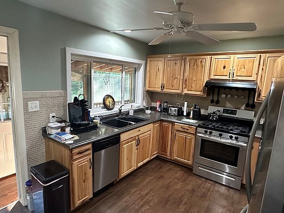 This property is truly an outdoor enthusiast's dream. Sit on the screened in front porch and watch the wildlife roam about or go travel the numerous trails throughout the property. Relax on the covered patio with an open fireplace. Inside you'll find a cozy 2-3 bedroom home with 1 1/2 bath with a wood/coal burning fireplace.