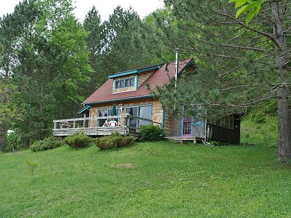 The sweetest cedar shingled cottage situated perfectly on 21.6 acres in Andes is a dream get away. Passively solar heated with an open beam construction, Anderson windows and sliders throughout. Well insulated with R-19 walls and an R-30 roof. There is a great room downstairs with open dining and eat in kitchen. The bathroom features an oversized Jacuzzi bathtub. There is a cozy guest bedroom downstairs. A spiral staircase leads to the master bedroom featuring plenty of light, wood floors and ample storage space. Partly wooded with open fields and old roads throughout, this property also has a large, spring fed pond and dining pavilion. Next to the pond is an organic garden and greenhouse. A two story, two car garage also has a guest room on the second floor. Fruit trees and lovely perennials throughout the property. Four miles from the hamlet of Andes, minutes from the Pepacton Reservoir and ski slopes.