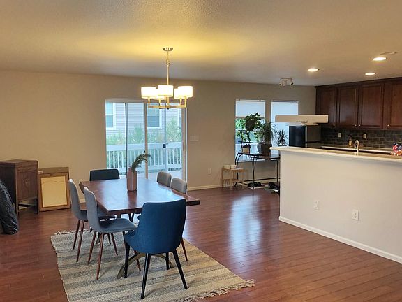 This 4 bedroom 3 bath home has designer touches thru out. You will love the big open kitchen and dining area that opens to a great room big enough for the whole family. The kitchen has upgraded cabinets, a butlers pantry and stainless appliances all included. You can sit on the beautiful back deck and enjoy family time. Low maintenance yard and Corner Lot within walking distance to Clear Sky Elementary School, Bison Park and The Grange (community pool). Great location for any family that enjoys being active with multiple parks nearby, hiking trails and Philip S. Miller Park (recreation center, incline, zip-lining and amphitheater). Open floor plan and basement partially framed with two more bedrooms and bath ready to finish.