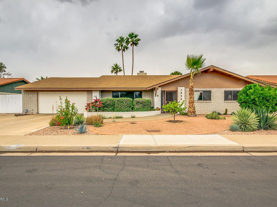 Spectacular 3 bedroom, 2 bathroom home with pristine pool/spa! This home brings a family or group together with its charm and multiple gathering spaces. A large eat-in kitchen includes peninsula bar seating w/granite countertops, updated appliances, & plenty of cabinet space plus a large pantry. The spacious master suite has a separate sitting/retreat area, en suite bathroom, and its private exit to the backyard. Throughout the home are laminate wood and carpet floors. The large family room features a beautiful stone fireplace with conversation pit. Perfect for relaxing or entertaining is the backyard with a spa to soak and relax in, a sparkling fenced pool to cool off and play, and covered patio to shade the AZ sun.EXCELLENT UPGRADES - New roof Dec 2012, New 5 ton 16 SEER A/C