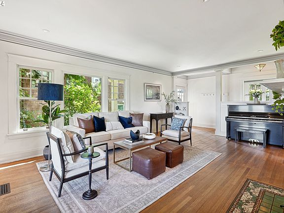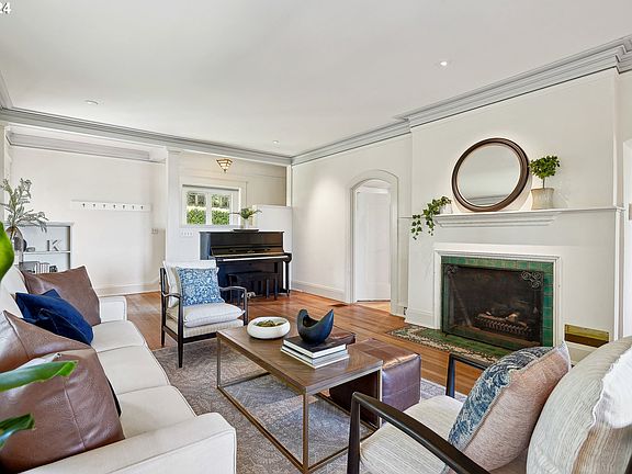 Welcome to 1854 NW Aspen Ave, a quintessential Craftsman home nestled in the highly sought-after Willamette Heights neighborhood. This charming residence, built in 1908 and meticulously remodeled, seamlessly blends historic character with modern comforts. Step inside and experience the allure of this timeless home featuring formal elegant living spaces adorned with original mouldings and hardwood floors. In the living room, relax by the fireplace or step through French doors to a show-stopping covered deck offering breathtaking views. The formal dining room is situated across from the Chef's kitchen, which is fully updated with quartz countertops, a tile backsplash, stainless steel appliances including new induction cooktop stove, double ovens, and a French door refrigerator. The upstairs sanctuary hosts four bedrooms with wood floors, including a primary en-suite featuring coved ceilings, a luxurious jetted tub with new tile, a newly tiled shower, new flooring in the shower area, and access to a another of the home’s many decks. You will also find a convenient laundry on the upper floor. The lower level has a family room, additional finished space, a laundry area, ample storage space, and access to the backyard. Discover versatility with the separate ADU that boasts a great room concept living area with hardwood and tile floors, a gas fireplace, two sets of French Doors that can be opened for amazing indoor/outdoor living, continuing the same feeling you have from home, and an open kitchen with a SS fridge and gas stove. This is a one-bedroom, one-bath unit with a newly tiled shower. The ADU also has a private deck overlooking the lush gardens and stone pathways. It’s perfect for guests, multigenerational living or the offsetting of a mortgage. Enjoy proximity to Forest Park, NW 23rd Avenue's shops, cafes, and grocery stores. With the Aspen trailhead just steps away from the front door, outdoor adventures await right at your doorstep. [Home Energy Score = 3. HES Report at https://rpt.greenbuildingregistry.com/hes/OR10231534]