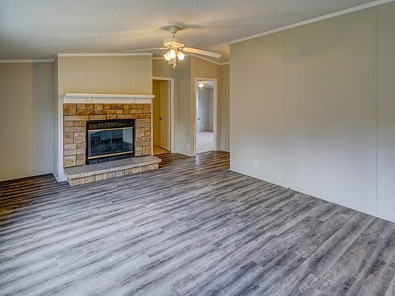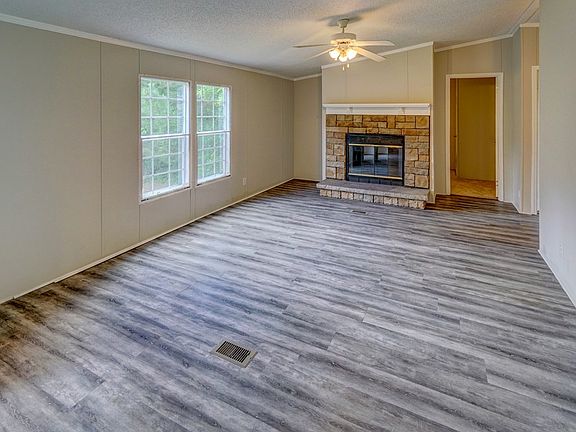 #MustSee Come check out this 4 bedroom 2 bath home. There is carpet and wood look vinyl flooring throughout the home. Walk into the great room that features a wood burning fireplace with stone surround and a wood mantle. The kitchen has stainless steel appliance package and a bar top area that seats 2 that over looks the great room. The master bathroom has a shower tub combo, dual vanity sinks, and a large walk in closet(4x12). All bedrooms have ceiling fans. The laundry room(12x5) has shelving for storage. The large back deck(15x11) over looks the backyard that is perfect for grilling in the summer months. Both the front porch and back deck are newly installed.