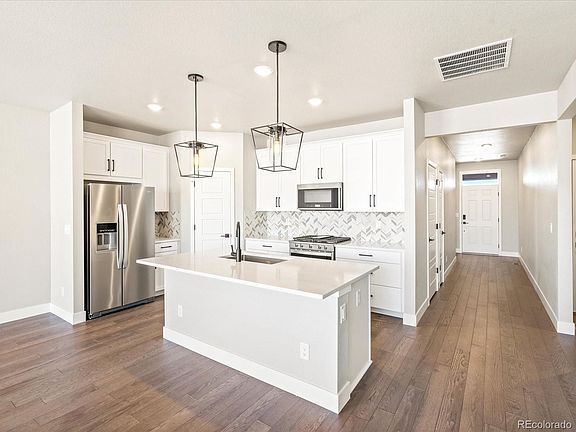 Brand new, energy-efficient home ready NOW! This spacious and cozy ranch home includes covered outdoor living for the beautiful summer days and is an open plan that lows with an optional fireplace for the winter nights. Finished Basement makes this Ranch Plan a 4 bedroom 3 bath home. Bold Sophistication Collection with Extended Wood Floors. Models now open in Aurora, is located within the Murphy Creek Masterplan community. Looking for fun right outside your door? the Murphy Creek Golf Course surrounds this beautiful community. If golf isn’t for you, there are also tennis courts and a community center with a pool, offering something for the whole family. Not only is this community surrounded by great amenities, but has great single-family floorplans. Each of our homes is built with innovative, energy-efficient features designed to help you enjoy more savings, better health, real comfort and peace of mind. Photos are a Builder home of same floorplan