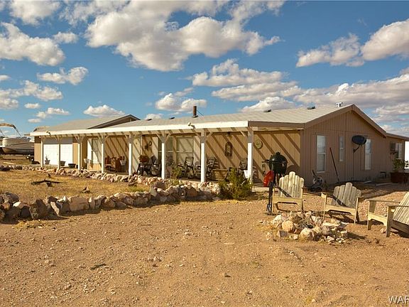 Amazing desert paradise is what you will find waiting for you at this fully furnished home *Views-Views-Views of the Black MTN wilderness area are stunning from the covered front porch *Home sits on 2+ acres of wide open space *Bring the horses or room for all your off road vehicles *Sit and enjoy our famous AZ sunsets around a campfire every night or the beautiful sunrises looking east across Golden Valley *Home has a 2 car garage with enclosed breezeway and tons of storage *The 40 ft Conex container conveys w/sale for additional storage *Storage shed next to it stays also *Home is a split bedroom plan with open kitchen/dining/living room with NEW FLOORING throughout *Bedroom 2 & 3 have carpet *Kitchen has upgraded stainless steel appliances except for white microwave*Off the dining room French doors take you to an enclosed air-conditioned AZ room w/wet bar perfect for entertaining *Furnishings are western style rustic woods and include TV, washer dryer etc *Just off paved Egar and a short drive over dirt roads to the property on Greer *Must see to appreciate all this home has to offer *Property currently has a water haul system set up and owner has water delivered at a great rate but there is a registered drilled well on the property *Owners have never used the well and buyer must confirm if its usable *Fully finished AZ Room WITH TILE FLOORS & Enclosed breezeway are not permitted but seller has engineer cert for both from when purchased in 3/2018 *It's a quick drive to Kingman/Bullhead/Havasu, Lake Mohave & Colorado River and all the area has to offer *Clean, move in ready and furnished call for a viewing appointment today! *Property is owned by a licensed AZ Real Estate Agent *List of furniture staying with home will be provided *Greer Rd across washes will need grooming after heavy rains*
