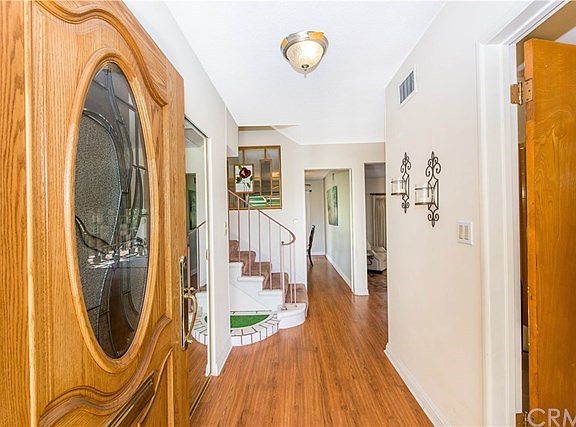 A quiet tree lined street leads you up this charming home in the heart of the city. This home has been meticulously cared for and loved. You are just minutes away from Disneyland, restaurants and shopping. The home features a downstairs master bedroom, master bath with walk-in shower and plenty of extra storage space. Family room features a stone fireplace and offers a view of the expansive, peaceful backyard. Dining room has plenty of room for large family gatherings and is open to the breakfast bar, as well as, the backyard. The kitchen has been updated with granite counter tops and a custom back splash, kitchen sink, faucet and appliances. The upstairs is home to two more bedrooms each with ceiling fans and mirrored closet doors, along with a shared full bath. The backyard is an oasis with mature landscape, fountain, covered patio and complete privacy. You will enjoy the colorful scenery, your very own lemon and orange trees and there is still plenty of room for a pool, garden or playground. Newer central air and heat, laundry, automatic sprinklers, and a composite roof are just a few features that make this home move in ready. Great neighborhood with sidewalk and a true sense of community.