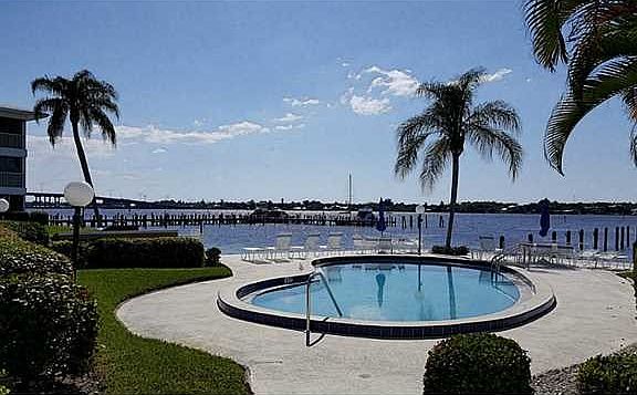 Delightful ground floor unit with an indentured 30' dock (DOCK #30) in a relaxing waterfront community bordering the St. Lucie River. Easy care tile flooring throughout living areas. Freshly painted ceilings, walls and baseboards. Updated Kitchen cabinetry and granite counter tops. New window blinds in Kitchen and front Bedroom. Furnishings included! Tranquil courtyard has a Southern exposure and garden view with a peek of the canal. Coin laundry and extra storage closet next to unit.. One small pet welcome. Move in ready!