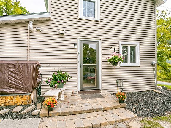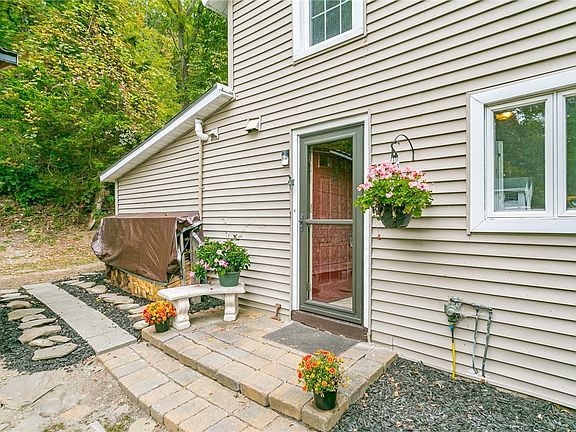 Cozy farmhouse style awaits you. This 3 bedroom one bath home is located on 3.34 wooded acres. Enjoy your coffee in the sunroom/home office while enjoying the scenic views and wildlife. First floor bedroom, bath and laundry for convenience with an additional 2/possible 3 bedrooms upstairs. The spacious yard is perfect for entertaining or gardening. Enjoy hiking in the private woods that backs up to High Tor. Many home improvements including back roof replaced, new pex waterlines, pressure tank and pump, new roof and wall on the white shed, outdoor receptacle and more. Delayed negotiations until Tuesday 9/24.