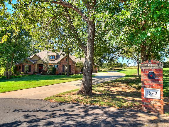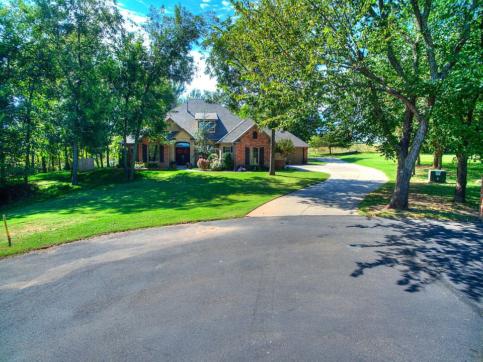 Beautiful custom home on 1.39 treed acres with plenty of room for a pool! Flexible, split floor plan offers 3 beds plus a study, huge bonus room with bathroom (could be 4th bedroom), and unfinished space upstairs for future theater room! Luxurious features throughout including solid wood doors, crown molding, built-ins, 2 inch wood blinds, 5 inch baseboards, walk-in attic access, hardwood floors, travertine tile, granite and marble counters, and so much more! The property is complete with a 1200 square foot insulated shop with electricity. All this and in Norman schools!