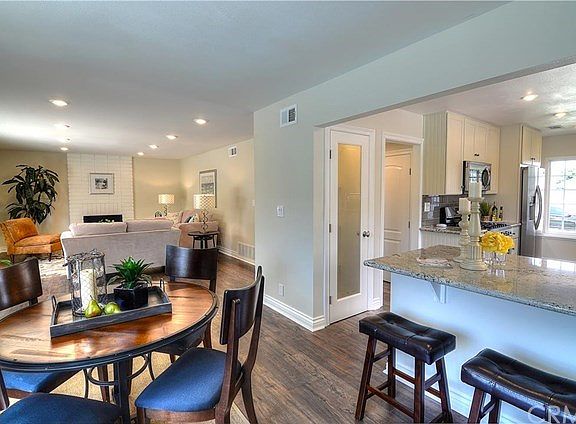 A Beautiful 5 Bedroom 3 Bath Fountain Valley Home with one Bedroom and Bath Downstairs. Completely Remodeled Throughout. An Absolutely Gorgeous Family Style Kitchen with High End Cabinetry, Granite Counters (including Breakfast Bar), Gourmet Quality Stainless Steel Appliances, including Refrigerator and separate Wine fridge. Huge Formal Dining Room. High end Wood Look Distressed Laminate Flooring in all Living areas, New Textured/Patterned Carpeting in all Bedrooms Three Remodeled and Customized Bathrooms. Huge Master Suite with Fireplace and Customized Ensuite. The Three additional Bedrooms Upstairs are all oversized. Dual Pane Windows and Slider. Freshly painted in and out. Located on an interior tract corner lot featuring ample guest parking. Backyard features covered patio plus Sparkling Pool with a child safety fence. There has not been a detail overlooked in this fabulous Fountain Valley Home.