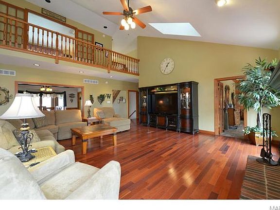 A wonderful view, a 1000 bottle wine cellar, a gorgeous home, in-ground pool, horse barn and pastures all just a short commute from work and the city. This country estate has it all and is located across the street from Greensfelder Park featuring over 30 miles of riding trails. The open floor plan makes entertaining a delight and living easy. The main floor features a spacious great room open to dining, kitchen and breakfast room doors open to the huge deck overlooking the grounds and pool. The finished walk out lower level has two additional bedrooms, full bath, and kitchen make this space perfect for "in-law" quarters or out of town guests. Second floor has two additional bedrooms, full bath and a loft/den/living space, so much room to make your own.