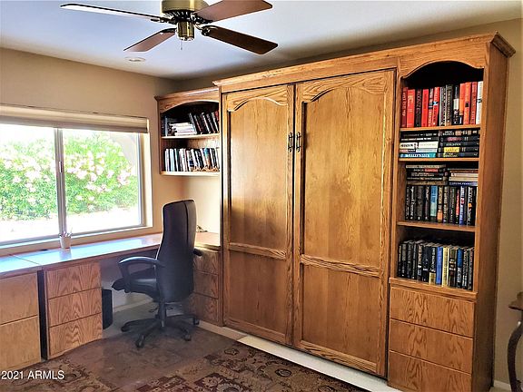 This single family home is located on a quiet street in the sought after Rio Verde Active Adult Community. Desirable floor plan with fireplace in the Great Room. Very nice breakfast room off of the kitchen for casual dining or use the Dining Area for a bit more formal entertaining. 2 spacious bedrooms. The Office/Den is multi-functional, with a built-in Murphy Bed for extra guests. Large covered patio and oversized 2 car garage.
