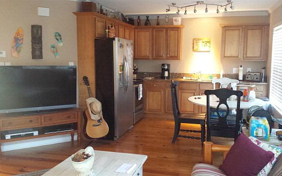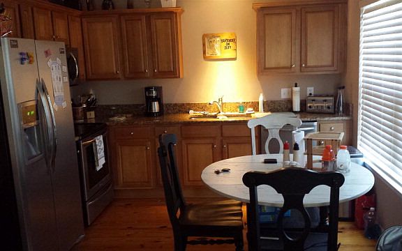 This riverfront condo is a beautiful unit in The Galley. It has an oval marble jetted bathtub and shower with matching marble countertop. Kohler sinks. Granite counter top in kitchen. Stackable washer and dryer unit. Matching Gallery Refrigerator, Cooktop, and Dishwasher. Pine wooden floors throughout. The parking area has 3 spaces below the condo on a slab. The Condominium Complex is called The Galley.