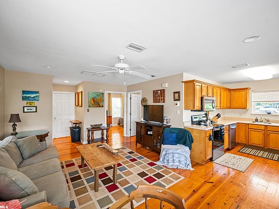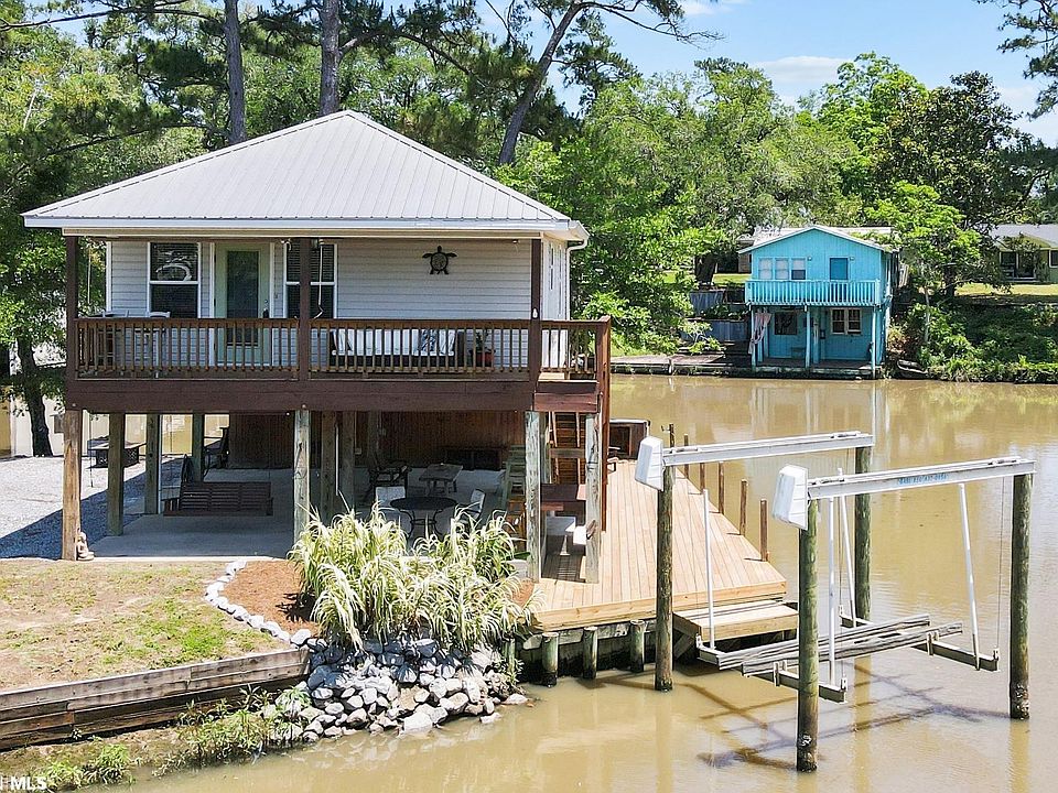 Rare opportunity to enjoy waterfront living on the Bon Secour river at an affordable price! Enjoy the gorgeous sunsets and watch the dolphins and manatees while you sip your favorite cocktail from your large balcony. Plenty of room for entertaining below as well on the large covered parking area. Large storage room below has power and is plumbed with plenty of room for all of your toys. Brand new HVAC unit, bulkhead and dock recently installed in 2022. Drop your boat in the water with ease using the 6000 pound deep water lift and head out to open waters or simply drop your kayak in and enjoy the wildlife in tranquility. The adorable condo is move in ready and has the best location with views from every room and waterfront on three sides. There are gorgeous pine floors throughout and all appliances will convey. The Galley is a quiet gated community and offers a community pool overlooking the water for residents and guests to enjoy. Whether looking for your weekend getaway or a new investment for your portfolio, you do not want to miss this gem!