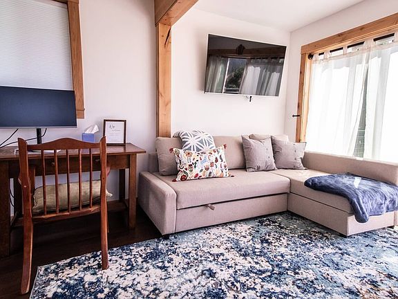 Newly remodeled and fully furnished this apartment (Barndominium) shares no walls or ceilings with other units. It features real hardwood floors, modern decor and breathtaking views from the balcony. All appliances are new and lightly used. This property sits just a short walk from plain grocery, hardware store and resturant. There are also cross-country ski trails within walking distance for those that enjoy the great outdoors.
